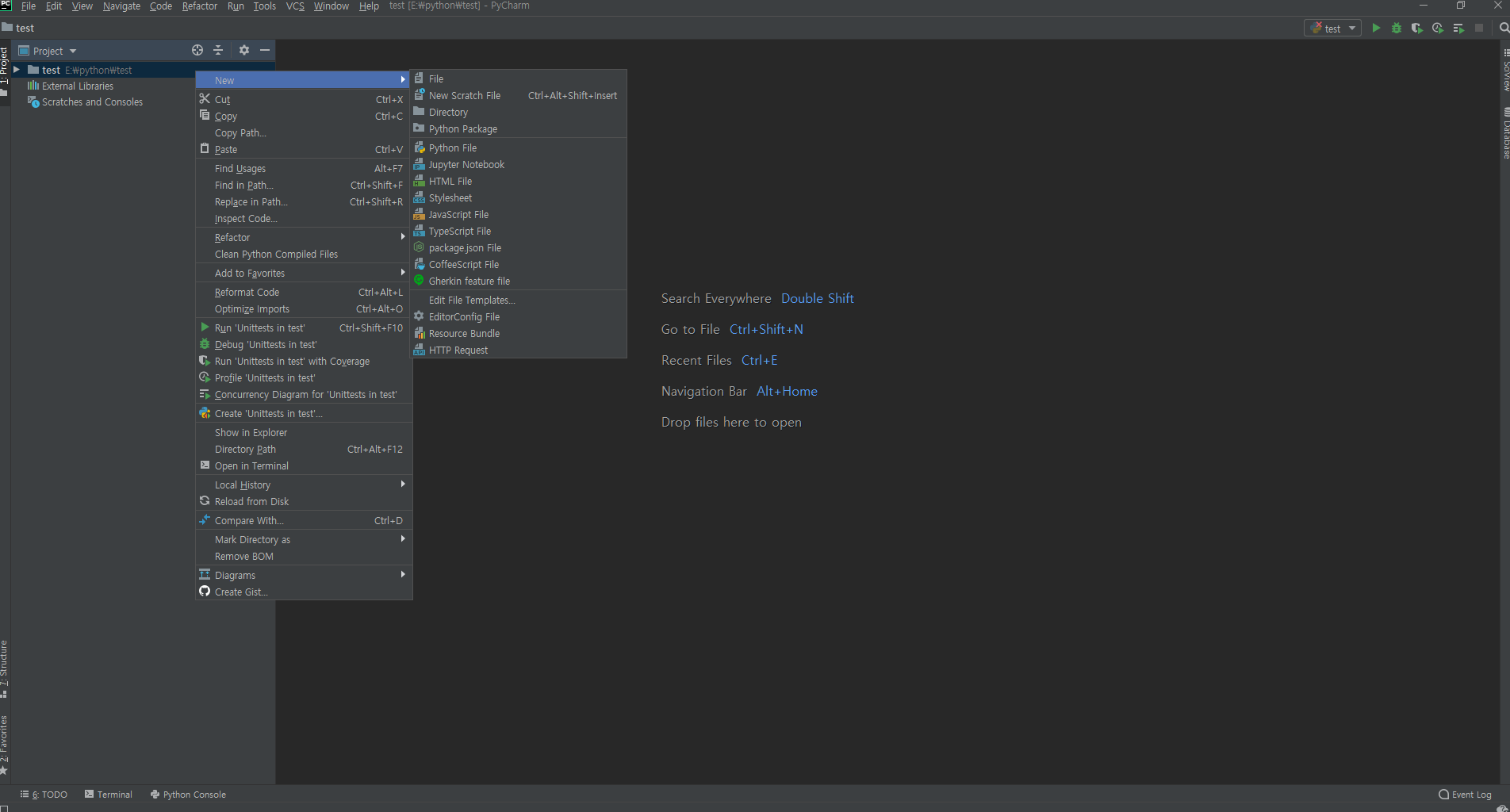 이제 내가 만들 폴더에서 우클릭 후 [New] - [Python File] 클릭